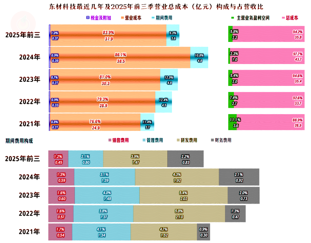 2025年前三季度,受毛利率大幅反弹的影响,再加上营收的较快增长,所带来的规模效应。主营业务盈利空间反弹至5.8个百分点,这个主营业务盈利水平,已经比毛利率要高很多的2023年都要高了。