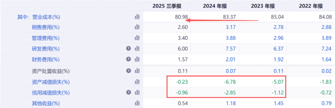 特发这边,利润虽薄,却是实打实干出来的。2025年上半年营业成本率降到80.98%,比2023年高点降了近5个百分点;期间费用率(不含研发)稳在8%左右,控费能力堪称教科书级别。更关键的是,公司在2023–2024年一次性计提了子公司财务造假带来的商誉和信用减值,把历史包袱彻底甩掉,2025年减值损失大幅减少,自然轻装上阵。