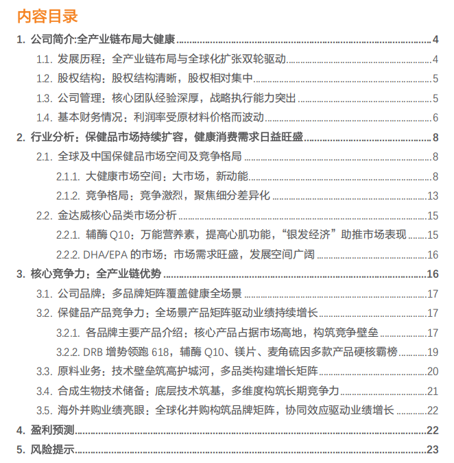 风险提示:产品及原材料价格波动风险、汇率波动风险、市场竞争风险、安全生产风险、人才风险、保健食品非药物。