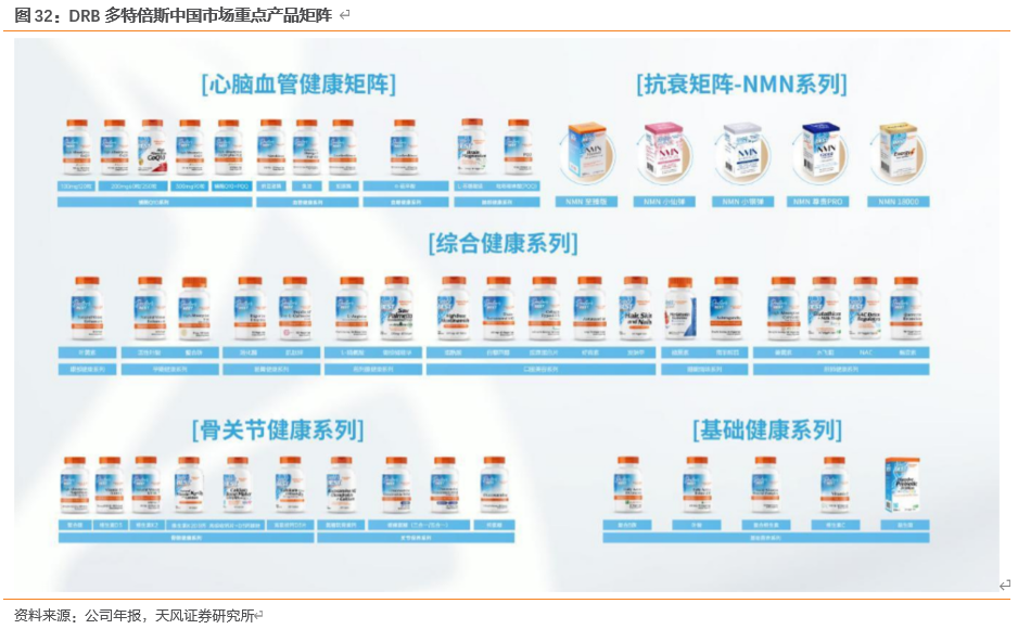 公司在营养保健食品终端产品领域,拥有Doctor's Best多特倍斯、Zipfizz、Viactiv、RxSugar等品牌矩阵,完成了在膳食补充剂、能量补充剂及功能性营养品等营养保健细分领域的覆盖。