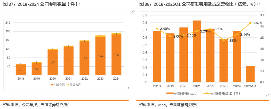 3)重视研发,合成生物技术丰富:拥有194项有效专利,研发费用持续投入,技术平台支持菌种选育、发酵工艺,为高附加值新品孵化奠定基础。