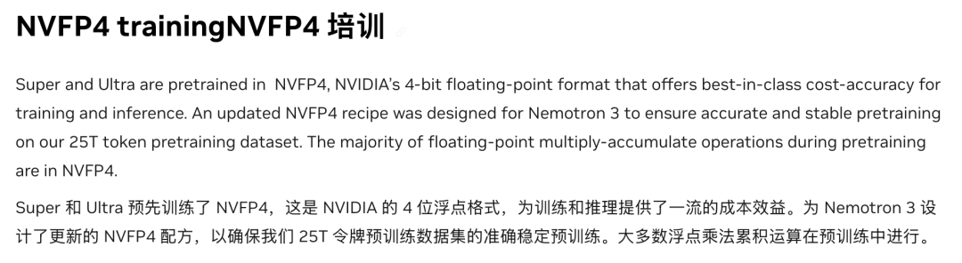 Nemotron 3 Super/Ultra将采用NVFP4格式进行训练和推理。