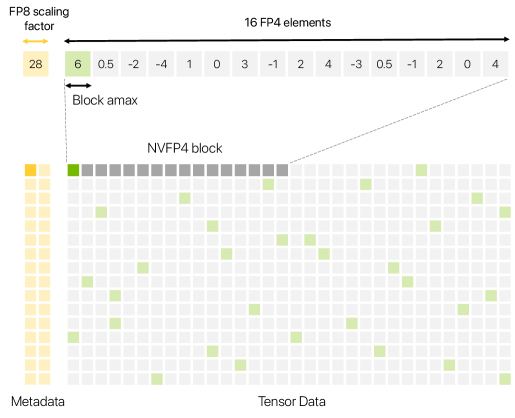 英伟达利用特殊的两级缩放(Two-levelScaling)技术,结合块级(Block-level)和张量级(Tensor-level)的缩放因子,在4-bit这种极低精度下,依然保持了模型的高性能。