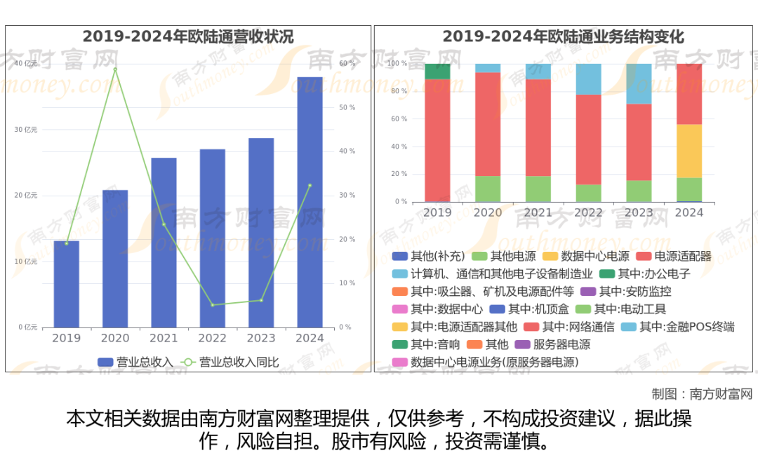 数据显示(如上图),欧陆通公司2024年营业收入37.98亿,同比增长32.32%,近5年复合年增长率(CAGR)16.19%。