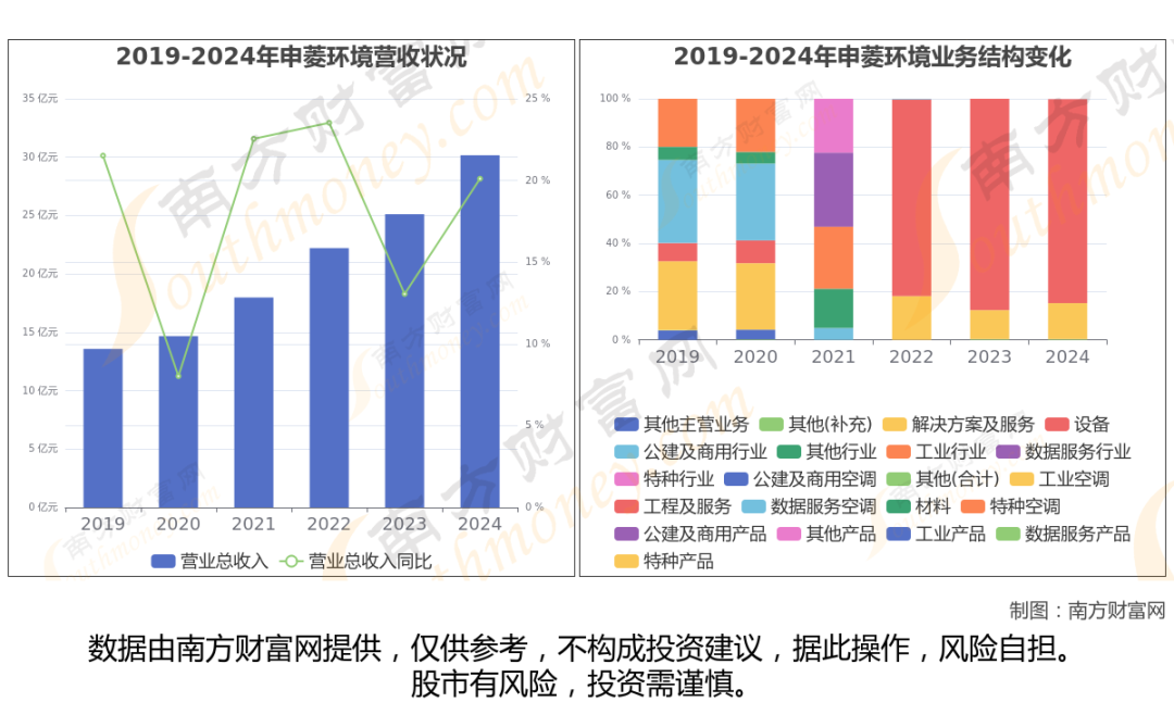 数据显示(如上图),申菱环境2024年营业收入为30.16亿,同比增长20.11%,近5年复合年增长率19.74%。