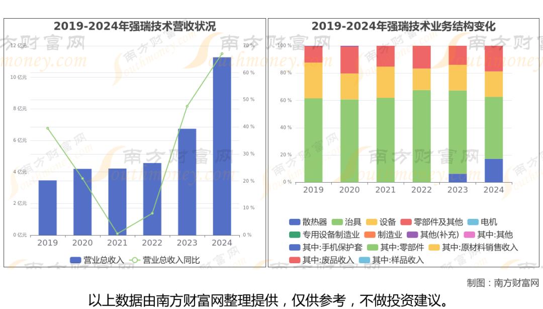 强瑞技术于2021年11月10日在深圳证券交易所上市,公司主营业务为主要从事工装和检测用治具及设备的研发、设计、生产和销售。