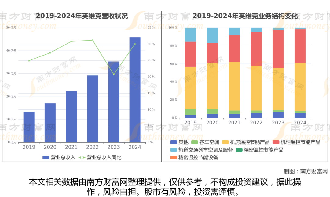 (如上图)2024年英维克公司营业总收入为45.89亿,同比增长30.04%,近5年复合增长率为28.12%。