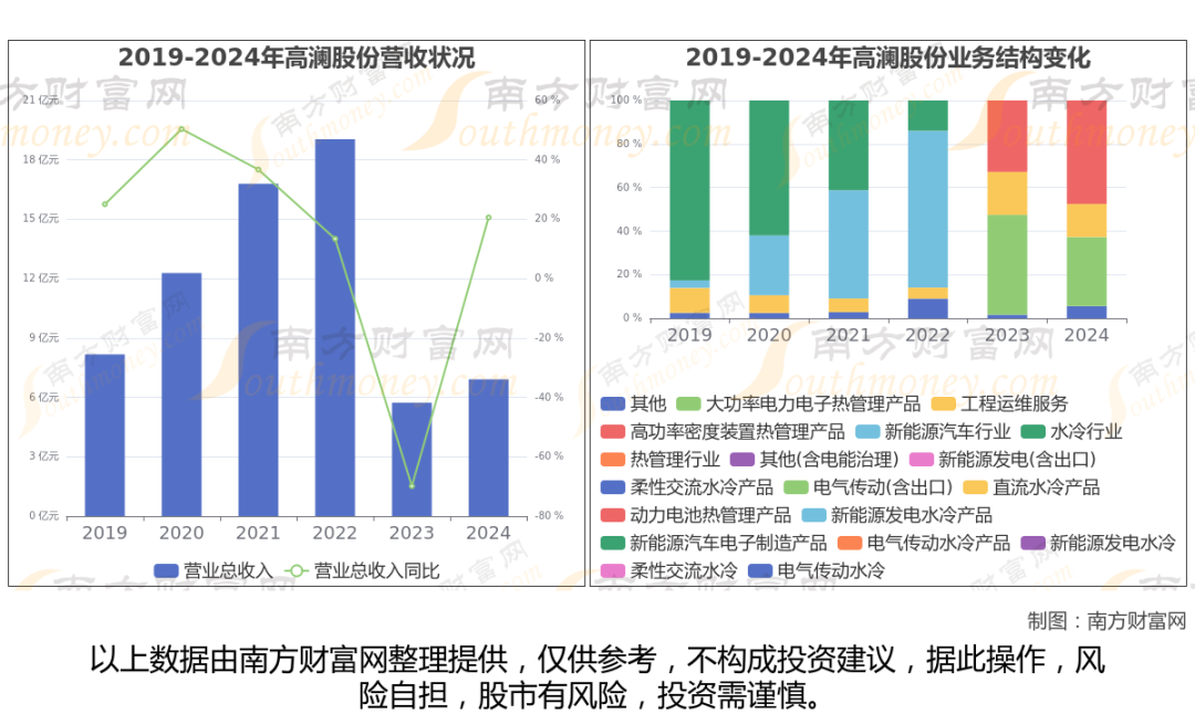(如上图)2024年高澜股份公司营业总收入为6.91亿,同比增长20.58%,近5年复合增长率为-13.39%。