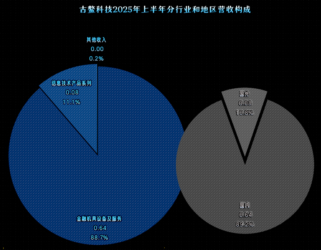 “金融机具设备及服务”和“信息技术产品系列”是古鳌科技的两大业务;一成出头的市场在国外,国内还是主要市场。