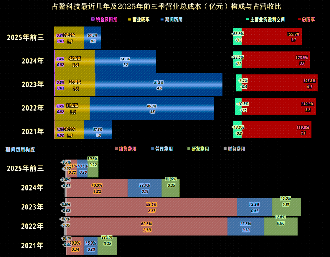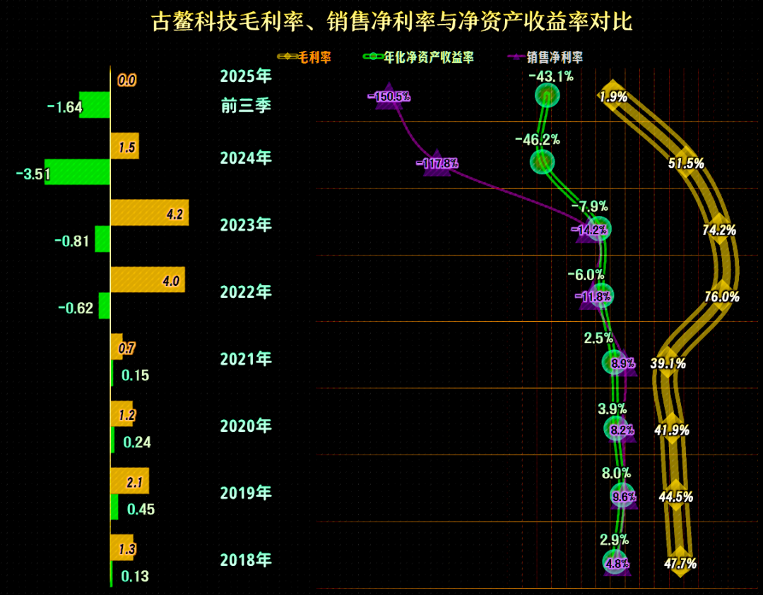 毛利率在2022年和2023年提升至3/4的超高水平,但正是从这个时候出现了持续近四年的亏损,当2024年毛利率大跌,2025年前三季度跌至接近零时,亏损就比同期的营收还高了。