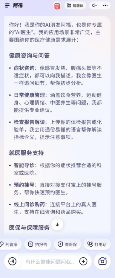 在功能覆盖上,蚂蚁阿福实现了“从日常到应急”的全场景渗透:
