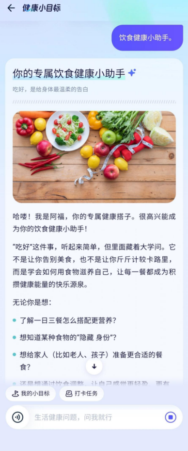 随着居民健康管理需求从“疾病治疗”向“预防养护”转变,健康AI工具正从“辅助工具”升级为“核心健康管家”。蚂蚁阿福的未来发展,可聚焦三大方向: