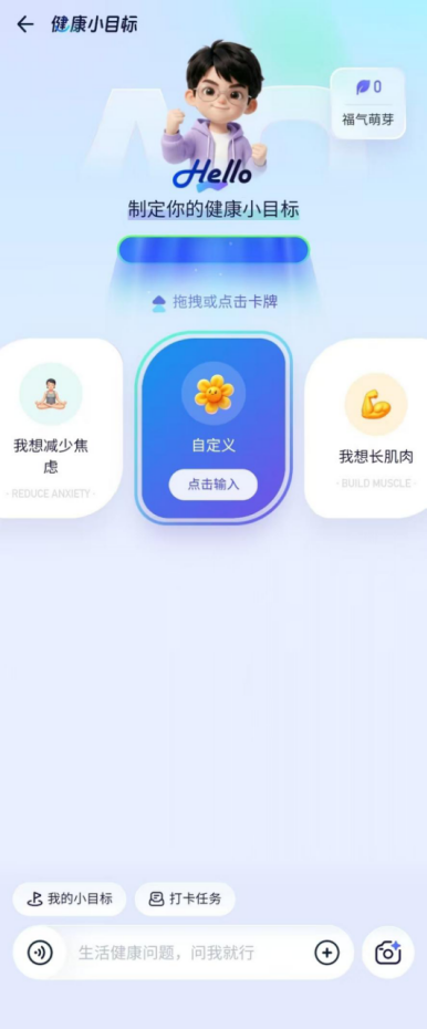 日常健康管理:通过“健康小目标”模块引导用户记录饮食、打卡步数,积累健康福气值,以游戏化方式培养健康习惯,同步运动步数、睡眠监测、心率血压等数据(需绑定设备),生成个性化健康仪表盘;