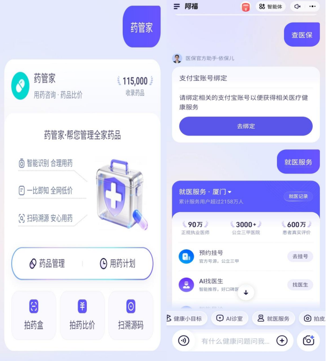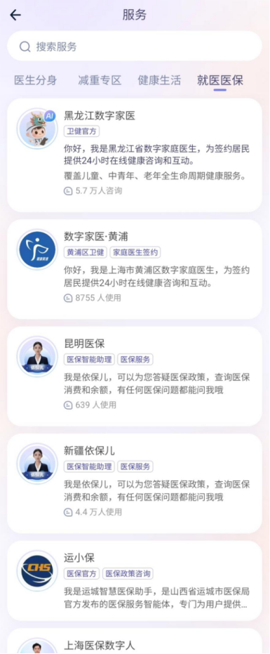 医保服务适配:针对不同地区推出专属医保助理(如昆明医保、新疆依保儿),解决医保政策地域差异带来的咨询痛点,新疆依保儿累计服务4.4万人;