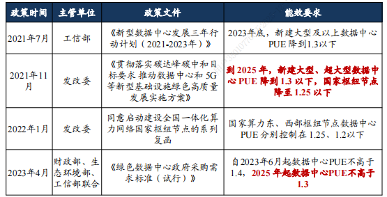 从政策导向上来看,我国也在持续收紧数据中心PUE(电能利用效率)要求,比如官方就要求从今年开始数据中心电能比不高于1.3,同时鼓励算力中心在研发、测试和应用中,采用液冷相关技术,从而提升能源利用效率。