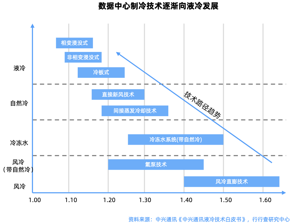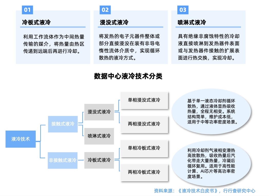 液冷技术相比风冷具有更高的散热效率,有助于降低数据中心的整体能耗以及提高能效比,尤其适用于单机柜高功率密度场景。