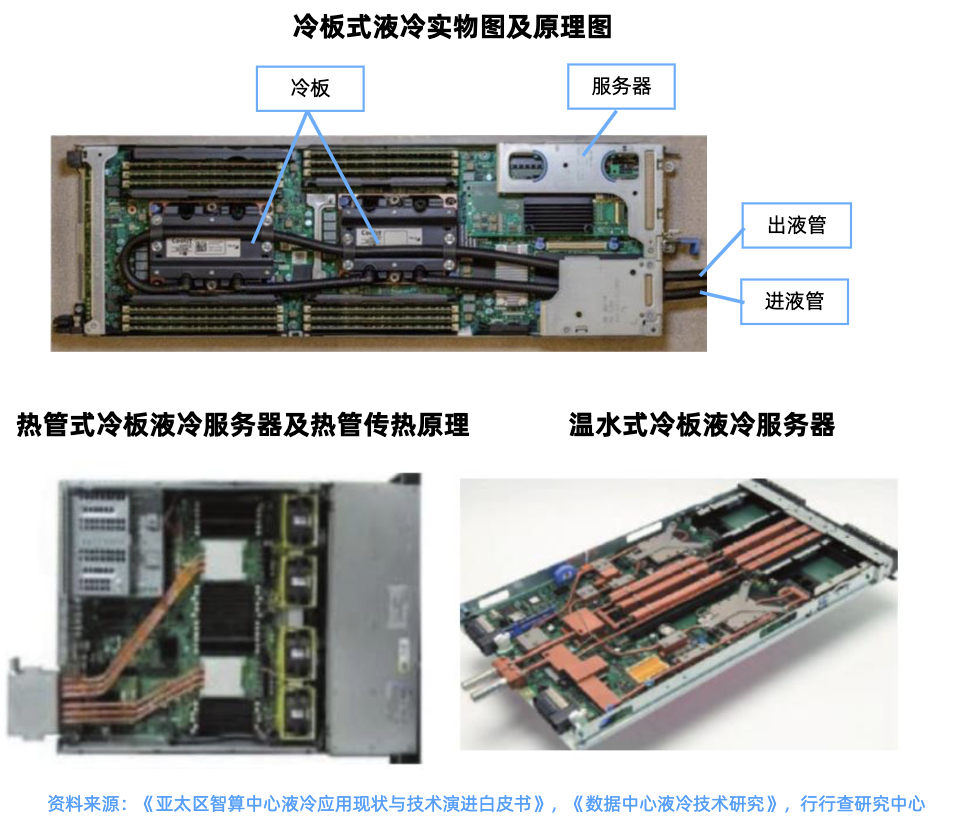 从液冷技术路线来看,当前液冷方案以冷板式为主,浸没式处于技术储备和逐步应用阶段。