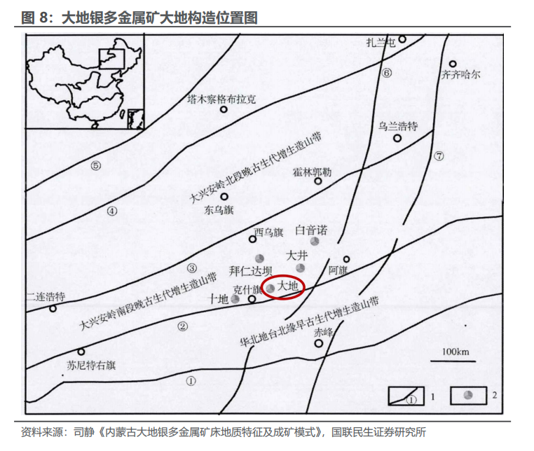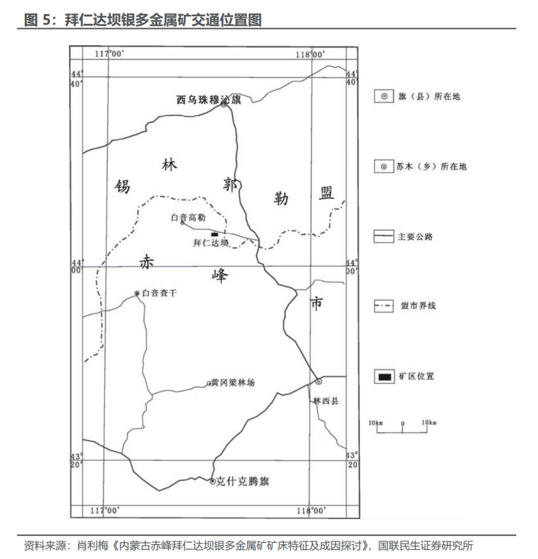 银都矿业旗下拜仁达坝银多金属矿为公司重点矿山。该矿山位于内蒙古赤峰市克什克腾旗与林西县交界处的巴彦高勒苏木(乡)境内,北距锡林郭勒盟西乌珠穆沁旗政府所在地 55 千米,东南距赤峰市林西县城 90 千米。从地质角度看,矿山属于大兴安岭西坡银多金属成矿带,与维拉斯托、道伦达坝、东不拉格、花敖包特等共同构成北东走向的银多金属成矿带。矿山资源富集主要受益于中生代强烈的构造—岩浆作用,矿石主要为硫化矿,无混合矿。氧化带与硫化带中矿石种类基本一致。