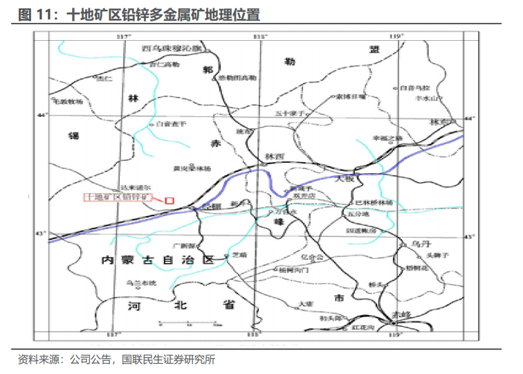 金都矿业最早成立于2006 年 9 月,2015 年8月获得采矿证,2016 年通过集团和光大矿业一同注入上市公司,公司持股100%。金都现拥有两处采矿权(十地银铅锌矿和白音查干矿区铅锌银矿)和一处探矿权(十地地区铅锌多金属矿)。 十地地区银铅锌矿为金都在产的银铅锌矿山。矿山位于内蒙古自治区克什克腾旗经棚镇北西 11km 处,行政区划隶属克什克腾旗经棚镇管辖。南距集安~锡林浩特公路约 6km,矿区内有乡村土路与公路相连。由经棚沿省级大通道、赤大高速至赤峰市 250km,交通较为方便。组分方面,矿床矿石矿物组成比较简单,金属矿物主要以方铅矿、闪锌矿为主,次为黄铁矿,偶见黄铜矿、辉银矿及自然银,金 属矿物约占 6~24%。