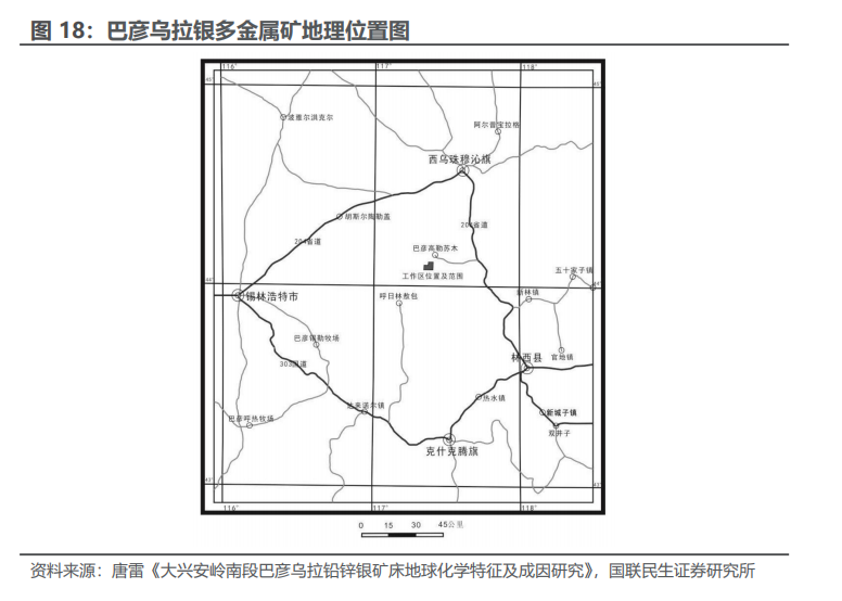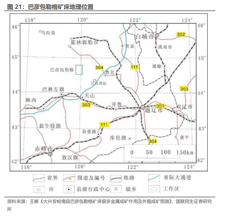 德运矿业为公司远期增量项目,公司持有 54%股份。德运矿业目前拥有巴彦包勒格矿区银多金属矿采矿权和 1 项探矿权,即内蒙古自治区阿鲁科尔沁旗巴彦包勒格矿区铅锌银多金属矿勘探(勘查面积 33.2873km2)。矿区距离阿鲁科尔沁 旗政府所在地天山镇约90km,隶属赤峰市阿鲁科尔沁旗巴彦温都尔苏木和罕苏木管辖,北距霍林郭勒市运距约 140 km,天山镇与巴彦温都尔苏木有巴天线公路相通,区内各乡镇(苏木)及村庄(嘎查)之间均有县级水泥公路相通,集通铁路 途经天山镇,并设有火车站(查布嘎站),区内交通便利。