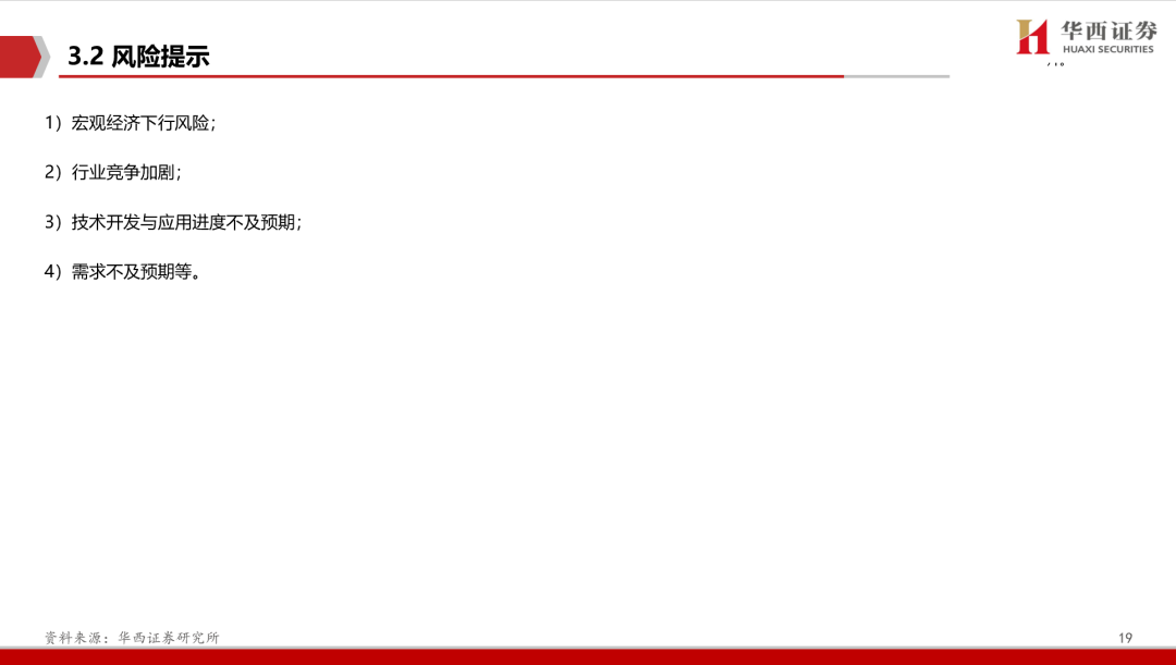 ► 风险提示:1)宏观经济下行风险;2)行业竞争加剧;3)技术开发与应用进度不及预期;4)需求不及预期等。