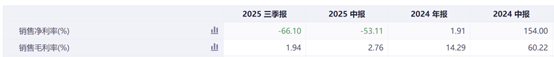 2025年前三季度,营收虽同比增长112%,但因公司的新业务尚处起步阶段,固定成本分摊压力极大,另外作为一家“半路转行”的电子设备企业,公司的自我研发能力较弱,缺乏技术壁垒导致产品附加值难免较低。综合因素影响下,2025年三季度,公司的毛利率却只有1.94%。扣除各项费用,亏损也就难免了。