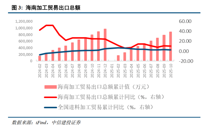 加工增值政策从最初的粮油、肉类加工,扩展到医药、咖啡、珠宝等高附加值产业,推动“保税 制造”融合模式。截至2025年10月,海南自由贸易港加工增值货物内销免关税政策获批试点企业共129家,加工增值内销货值约110.96亿元,免征关税约8.6亿元。覆盖行业从最初海关特殊监管区内的粮油、肉类等产业,扩大到如今区外的医药、咖啡、珠宝等加工领域。预计封关运行后,政策有望扩大产业范围,优化增值计算方式,进一步降低企业合规成本。