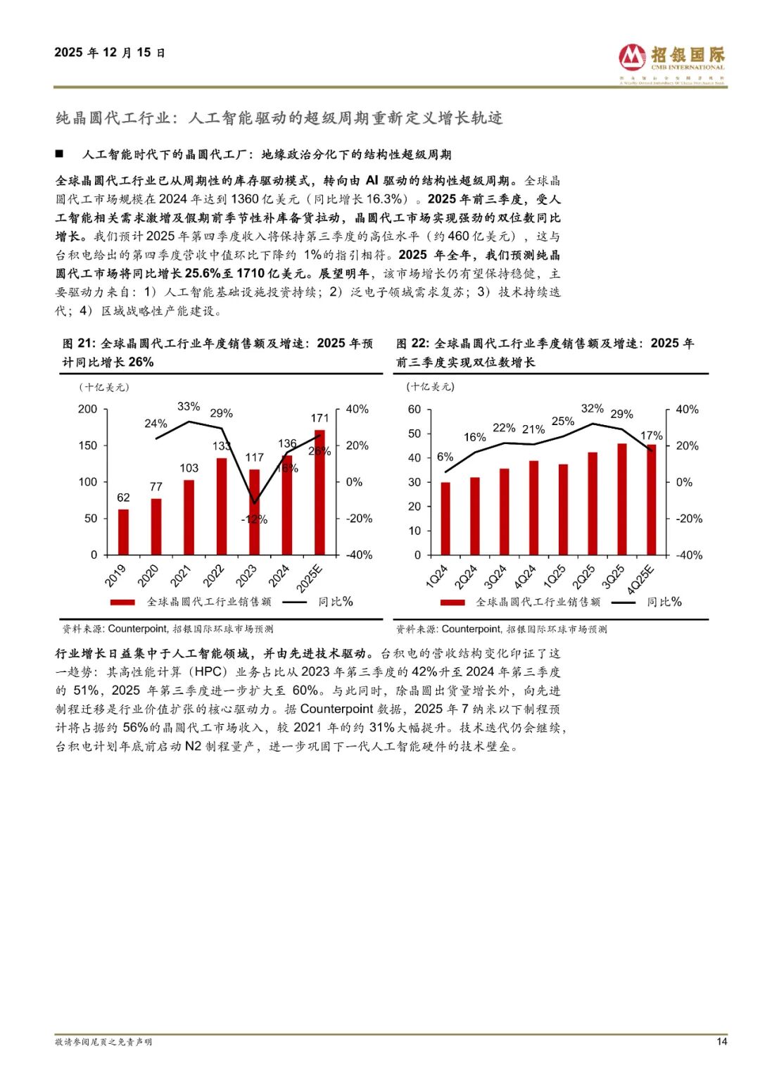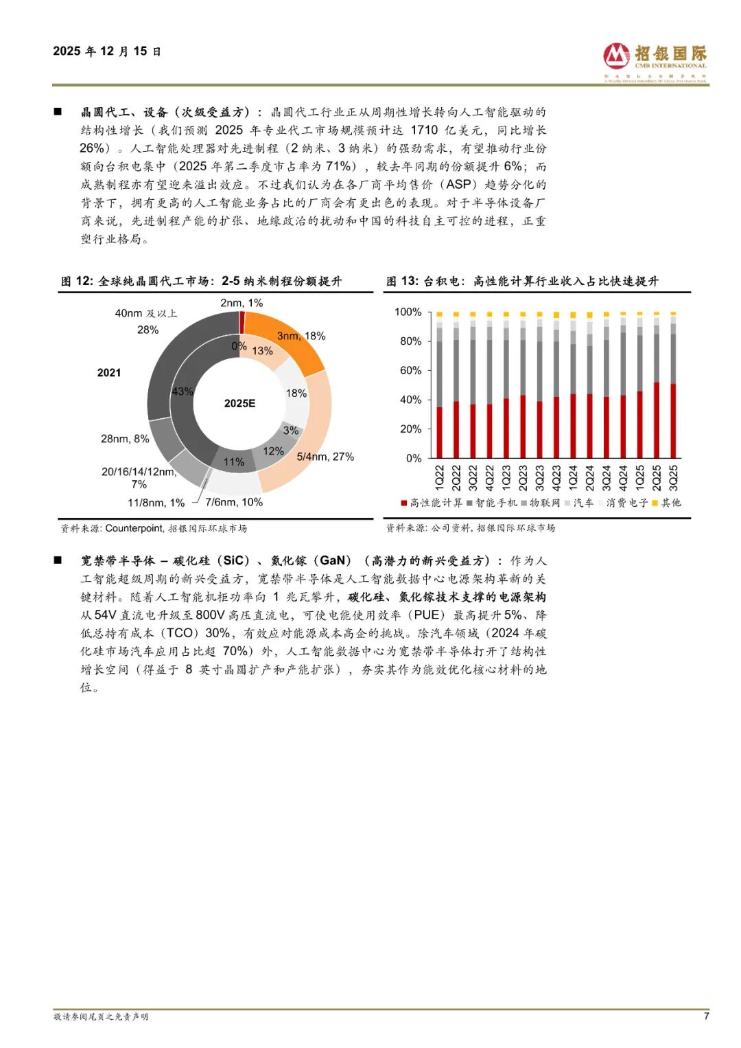 芯片最终广泛应用于智能手机、计算机、汽车、人工智能服务器及各类工业设备中。特别是人工智能、5G通信和汽车电动化智能化趋势,正持续催生对高性能芯片的强劲需求。