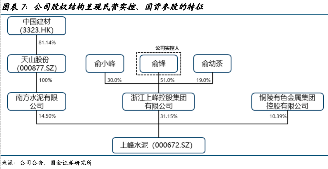 第一大股东为浙江上峰控股集团有限公司,实际控制人为俞锋。截至2025年三季度末,公司前3大股东分别为浙江上峰控股集团(持股比例31.15%)、南方水泥(14.50%)和铜陵有色金属集团控股(10.39%)。南方水泥是天山股份(000877.SZ)全资子公司,天山股份第一大股东为中国建材(3323.HK),持股比例81.14%;铜陵有色金属集团由安徽省国资委控股。公司实际控制人为俞锋,其通过持有浙江上峰控股集团有限公司51%股权间接持有公司15.89%股份,其中浙江上峰股东俞小峰系俞锋之妹,俞幼茶系俞锋之母。截至目前,公司董事会中仅董事刘宗虎先生、独立董事李琛女士拥有天山系背景,天山系对公司日常经营活动直接参与度有限。