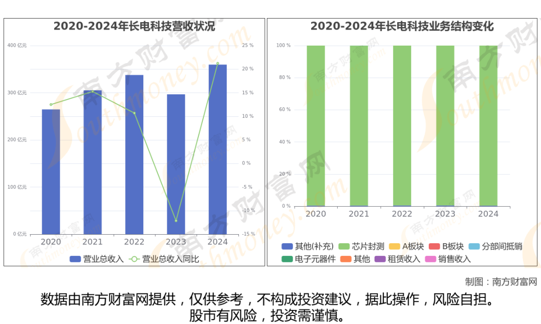 据长电科技2024年全年业绩显示(如上图),公司营业收入为359.62亿,同比增长21.24%,近5年复合年增长率7.97%。