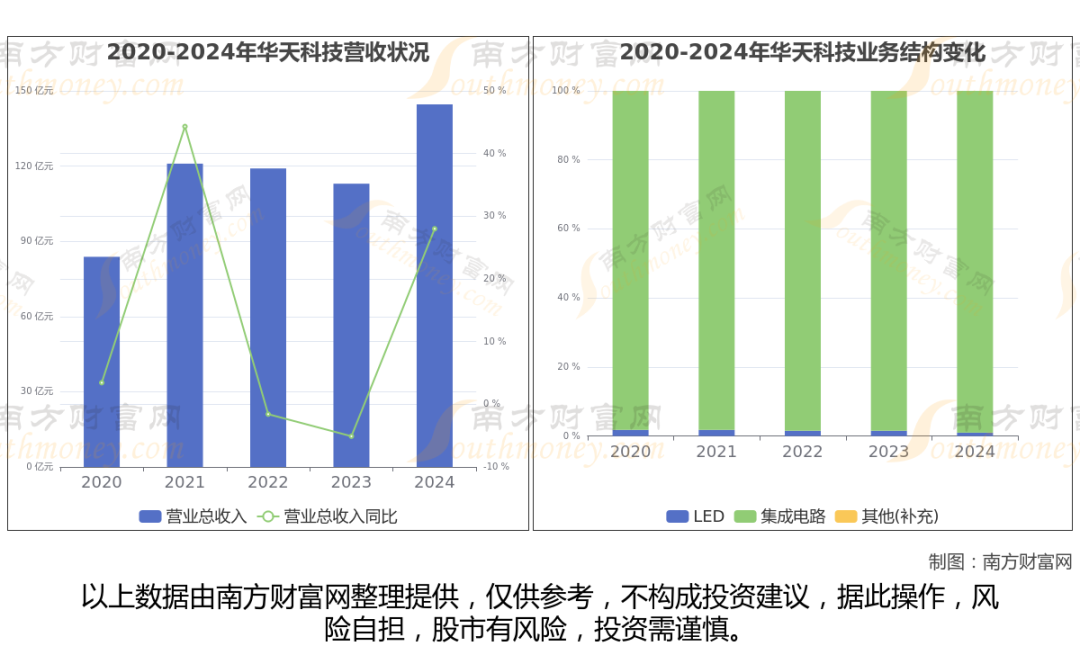 华天科技2024年数据显示(如上图),公司2024年营业收入144.62亿,同比增长28%,近五年复合年增长率14.61%。