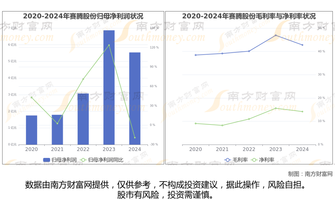 2024年公司归母净利润5.54亿元,同比增长-19.3%。净利润5.54亿,近5年复合年增长率33.42%;净利率14.17%,近5年复合年增长率11.83%;毛利率42.77%,近5年复合年增长率2.7%。