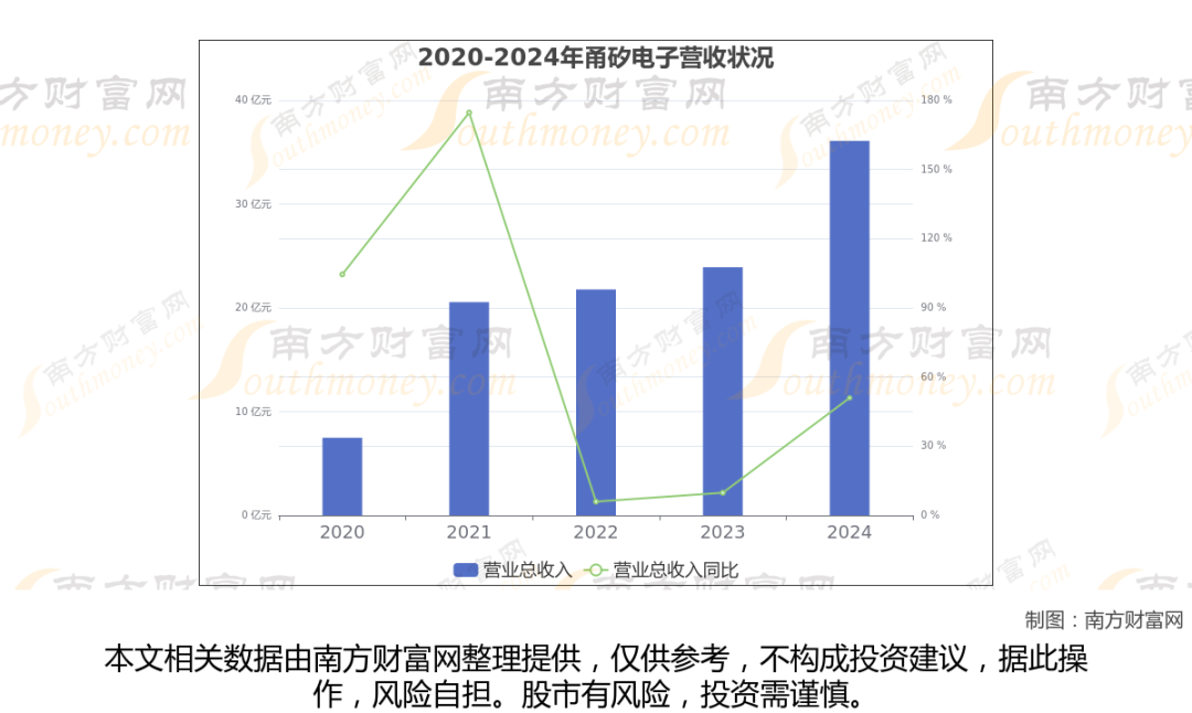 数据显示(如上图),甬矽电子2024年营业收入为36.09亿,同比增长50.96%,近5年复合年增长率48.21%。