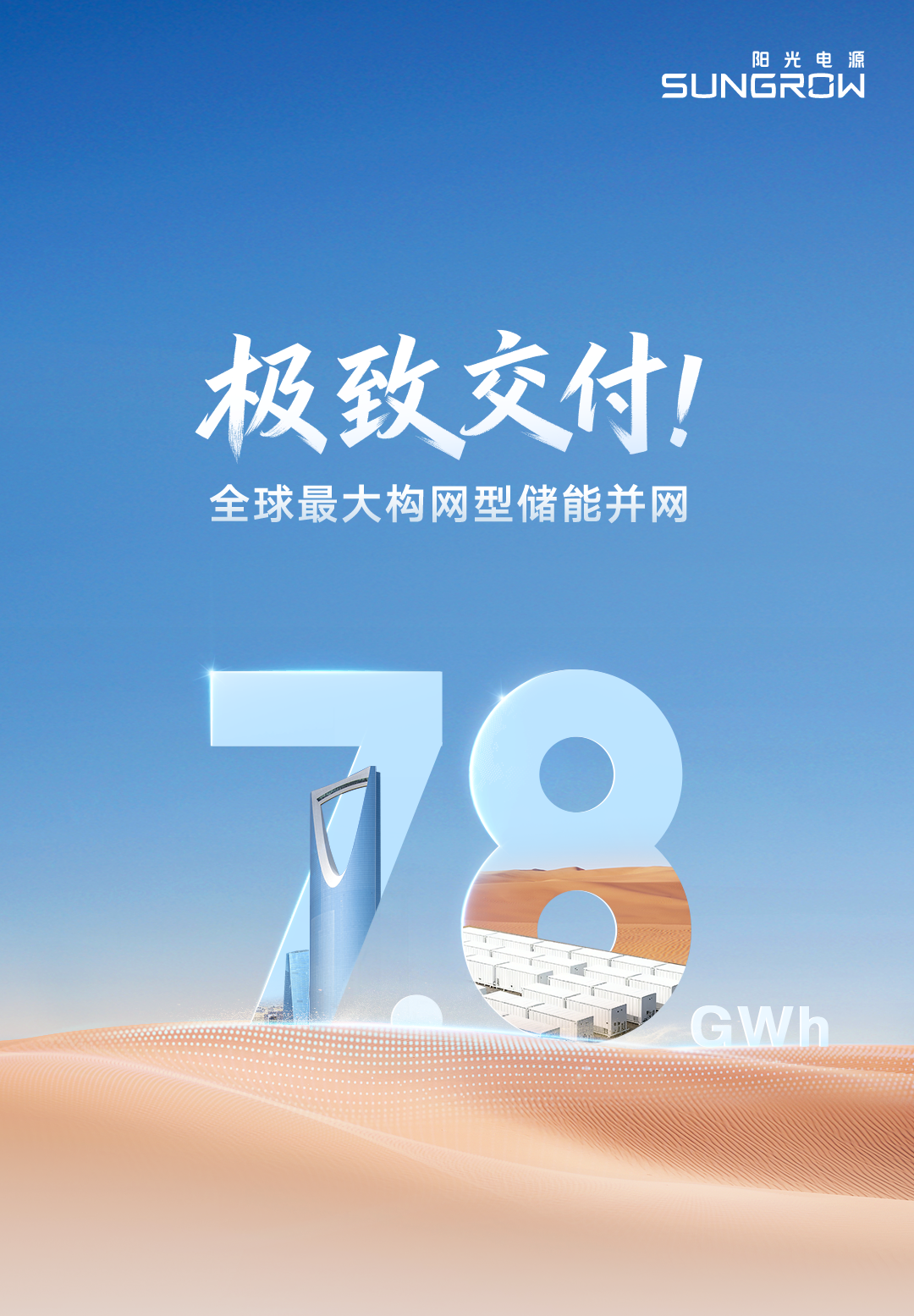 据储能知家获悉,12月18日,阳光电源发文称,由其一体化交付的沙特7.8 GWh储能项目全容量并网,一举创下多个全球之最——全球最快并网速度、全球最大并网储能项目、全球最大构网技术应用项目。