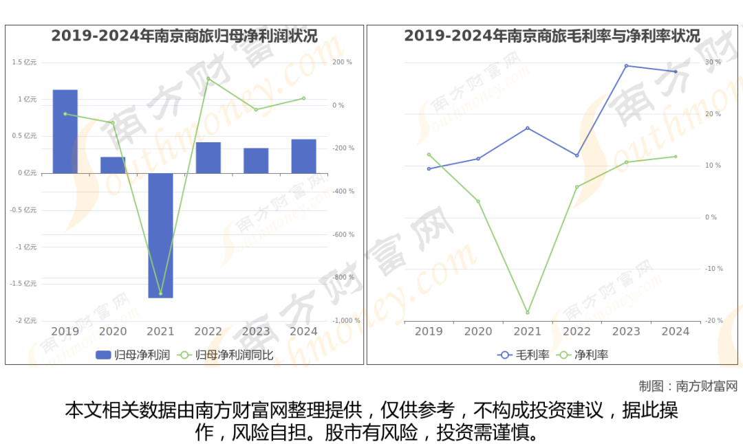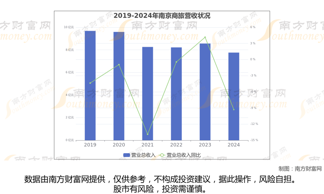 数据显示(如上图),南京商旅2024年营业收入为7.76亿,同比增长-9.31%,近5年复合年增长率-5.14%。