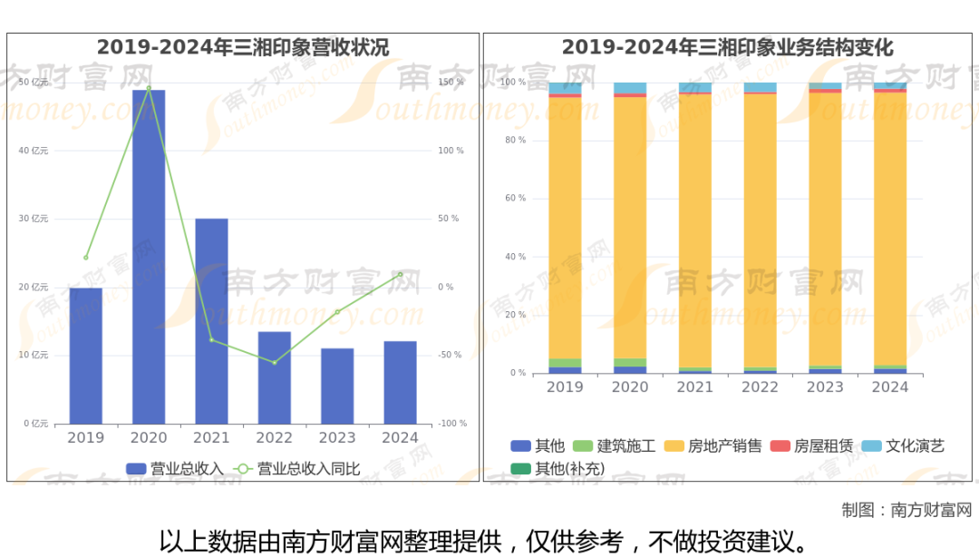 三湘印象于1997年9月25日在深圳证券交易所上市,公司主营业务为房地产开发与经营及文化旅游演艺类业务。