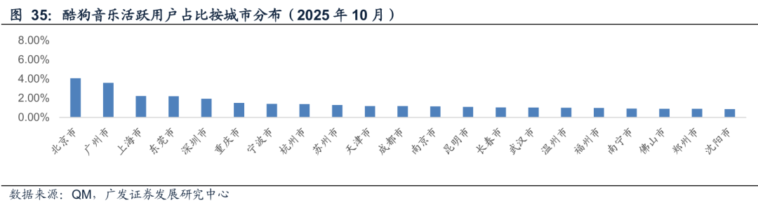 酷狗音乐top5则是北京、广州、上海、东莞、深圳。