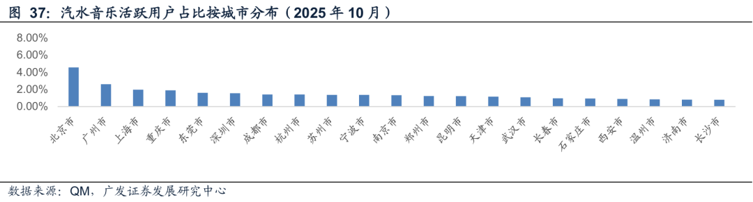 汽水音乐的top5是北京、广州、上海、重庆、东莞。