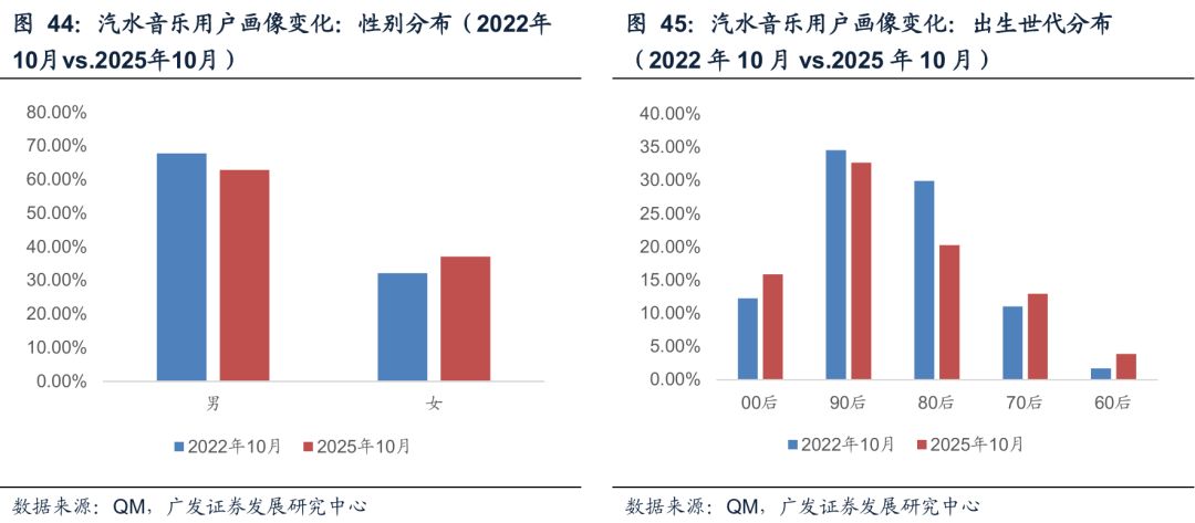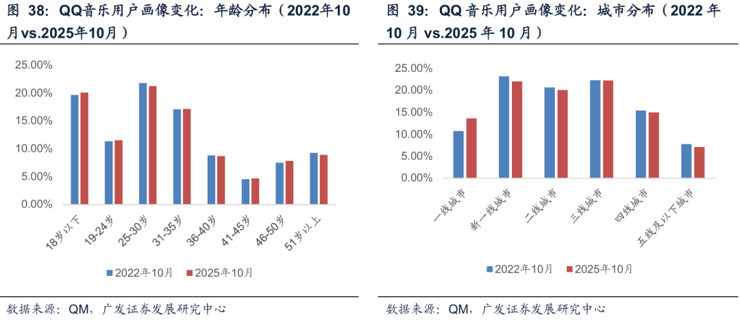 QQ音乐2025年10月的用户画像和2022年20月相比,整体变化不大,说明产品趋于成熟,用户趋于稳定。