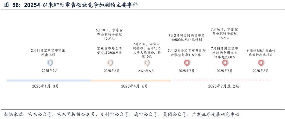 2025年以来,京东、阿里等均以外卖业务为抓手,从更高频的送餐服务切入即时零售领域,并以大额补贴等方式试图建立用户心智,认为外卖业务有助于对零售业务进行交叉销售和导流,加剧了即时零售领域的竞争态势。