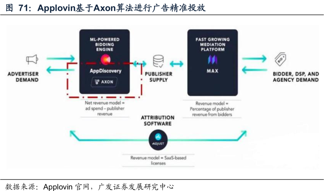 程序化广告:AI通过多模态能力及生成用户特征,提升模型训练、匹配的效率。例如,Applovin在2023年上半年发布了AXON2.0技术。AXON通过大规模和微秒级速度的竞价,将广告主的需求与流量方的供应相匹配,使广告合作伙伴能够进一步扩大在平台上的支出规模。