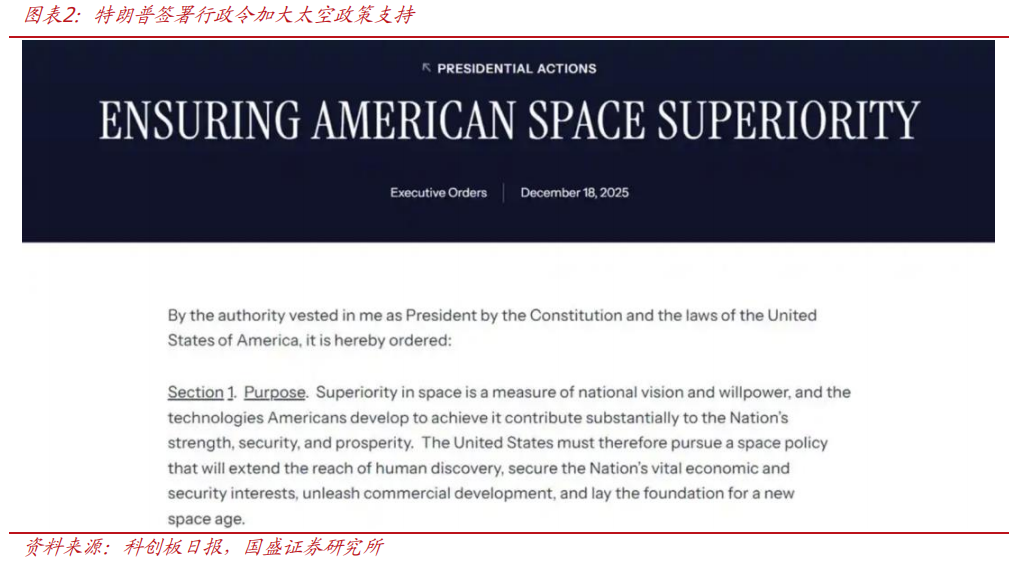 特朗普签署行政令,加大太空政策支持。根据科创板日报报道,当地时间12月18日,美国白宫发表声明称,特朗普当日签署了一项行政命令,为“美国优先”的太空政策制定了愿景,以确保美国在太空探索、安全和商业领域“引领世界”。该命令要求美国人到2028年重返月球,并在2030年前建立永久月球前哨站的初始设施;指示在月球和轨道上部署核反应堆。该命令通过升级发射基础设施和开发商业途径,以在2030年前取代国际空间站,从而刺激私营部门的创新和投资。在登月计划中,运载火箭承担着极其重要的角色。例如星舰,其已进行多次试飞,能够稳定实现“筷子夹火箭”的新一代回收方式。目前星舰已经开始验证V2版本飞船,并进行有效载荷部署测试,为后续Starlink V3版本卫星的发射及包括登月在内的深空探索实验奠定了坚实基础。