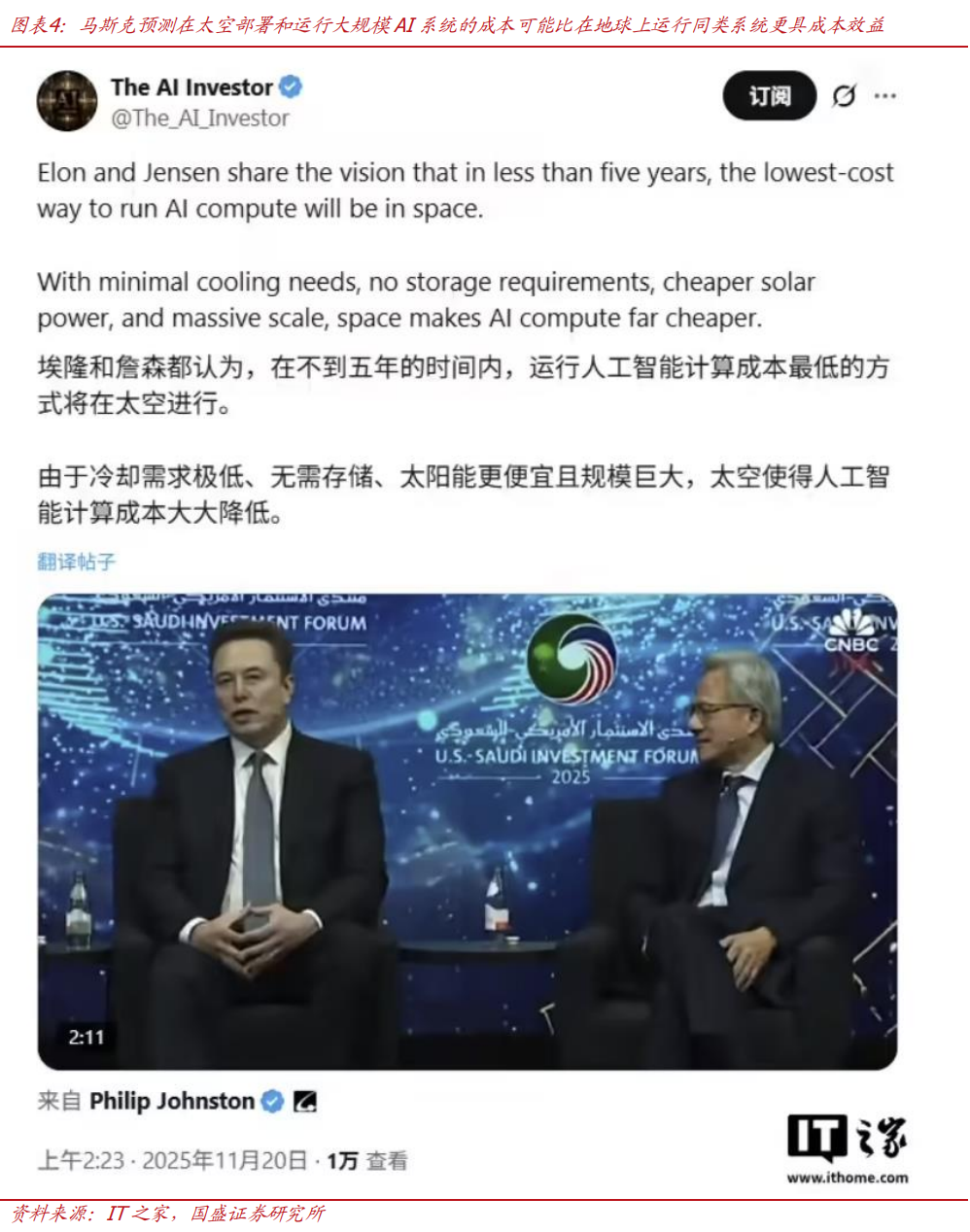相关标的: 1)太空算力:顺灏股份、普天科技、迈为股份等;2)火箭:西部材料、航天动力、航天机电、超捷股份、斯瑞新材、铂力特、飞沃科技、广联航空等;3)卫星:中国卫星、上海瀚讯、臻镭科技、航天宏图、中科星图、海格通信、高华科技、陕西华达、航天电器、电科数字、佳缘科技、盟升电子、震有科技、通宇通讯、信维通信等。
