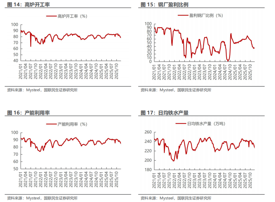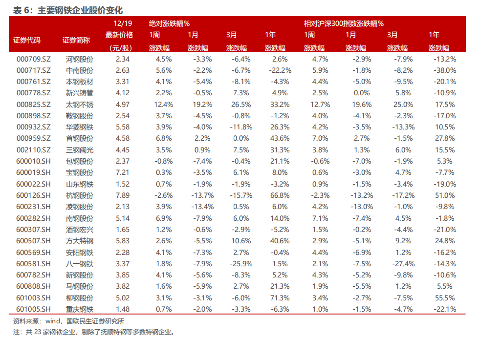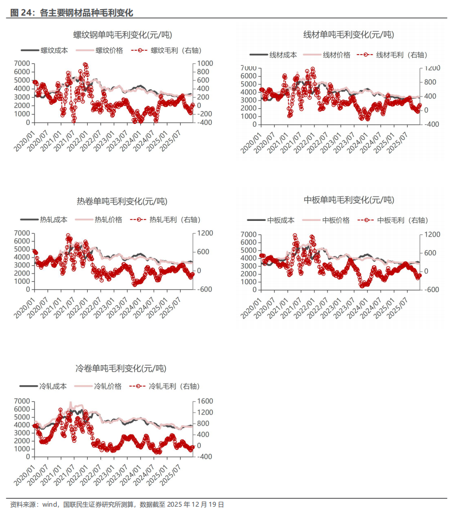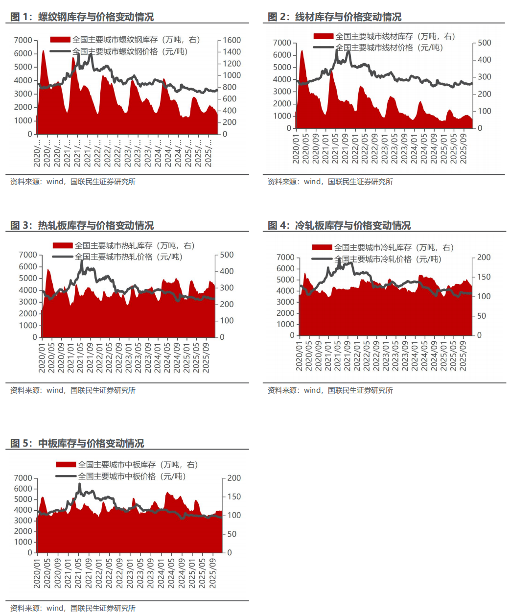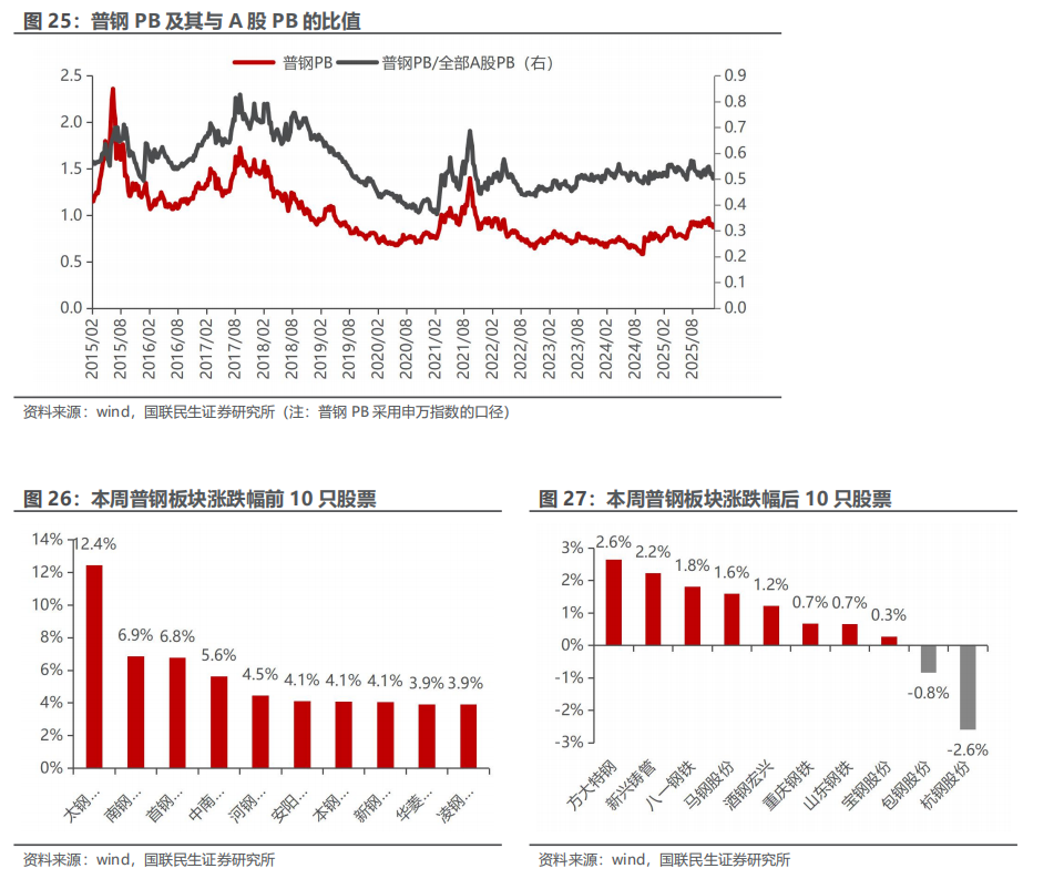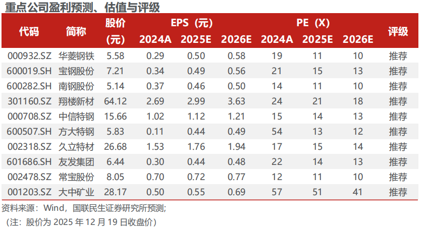 ◾ 投资建议:原料供给扰动,卷螺表现分化。本周,发改委等部门发布《煤炭清洁 高效利用重点领域标杆水平和基准水平(2025 年版)》,短期或加速中小煤企出清; 同时,印尼计划对煤炭征收出口关税 1-5%,煤炭供给存在收缩预期,原料上涨带动黑色系商品价格反弹。出口许可证管理下,出口比例较高的板材弱于内需为主的建筑长材,卷螺利润分化。低利润 重污染天气下,钢厂检修增加,铁水、 钢材产量下行幅度高于往年,库存压力小幅缓解。长期来看,高端产品出口比例将进一步提升,引导行业从规模扩张转向质量效益提升,龙头企业将进一步收益。 推荐:1)普钢龙头标的:华菱钢铁、宝钢股份、南钢股份;2)特钢板块:翔楼 新材、中信特钢、方大特钢;3)管材标的:久立特材、友发集团、常宝股份;4) 原料板块中增量明确的标的:大中矿业(铁矿 锂矿)。