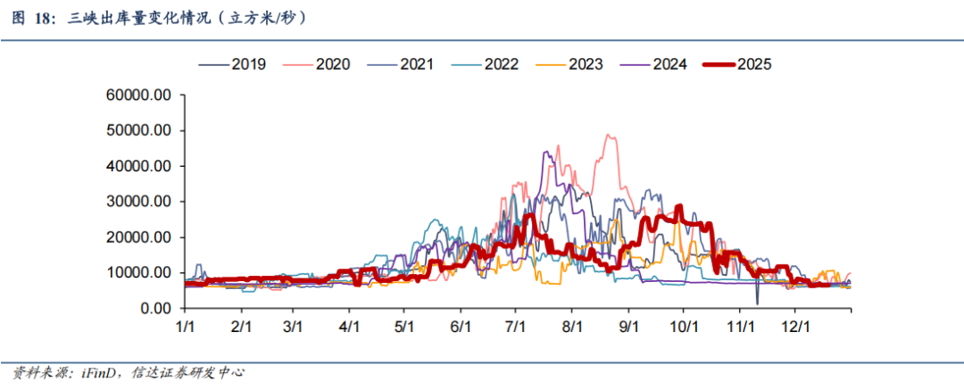 水电来水情况:三峡出库流量周环比增加。截至12月19日,三峡出库流量6520立方米/秒,同比下降6.86%,周环比上升0.62%。
