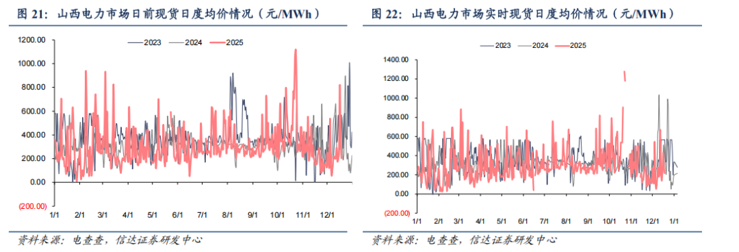 ● 山西实时现货市场:截至12月19日,山西电力实时现货市场的周度均价为253.70元/MWh,周环比上升49.68%,周同比下降19.8%。