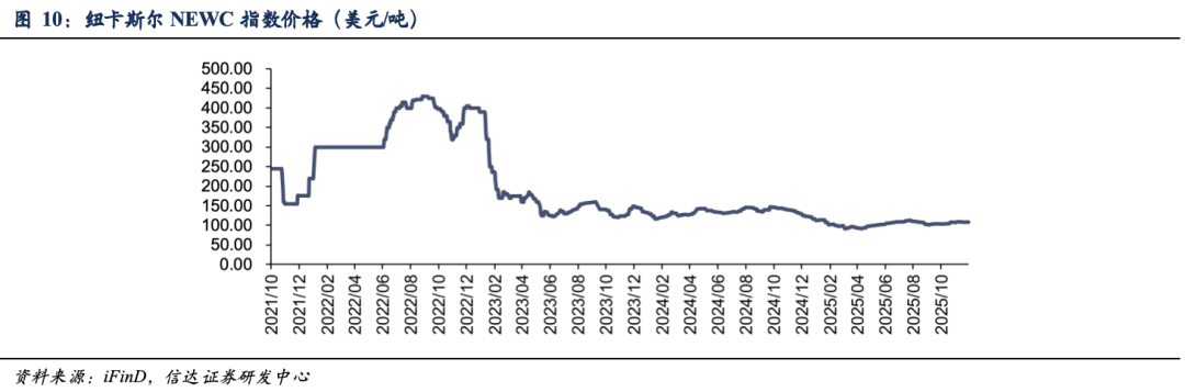 截至12月18日,纽卡斯尔NEWC5500大卡动力煤FOB现货价格75美元/吨,周环比下跌3.00美元/