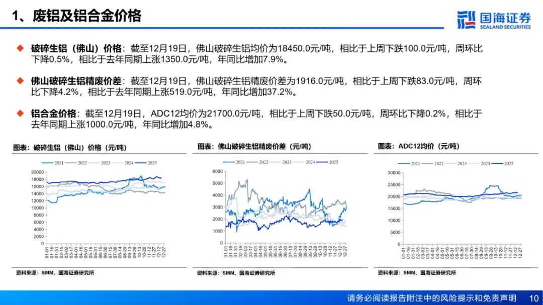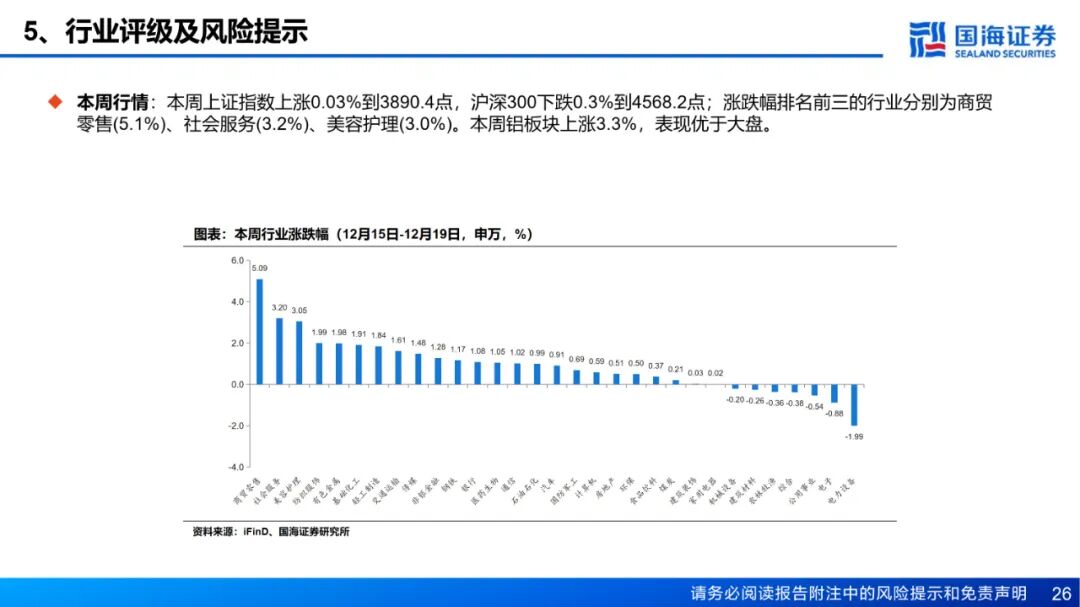 风险提示:(1)下游需求不及预期风险;(2)政策管控力度超预期风险;(3)电力供应不足风险;(4)供给增加超预期风险;(5)铝价大幅波动的风险;(6)数据更新不及时的风险;(7)汇率波动的风险;(8)地缘政治风险;(9)重点关注公司业绩不达预期风险。