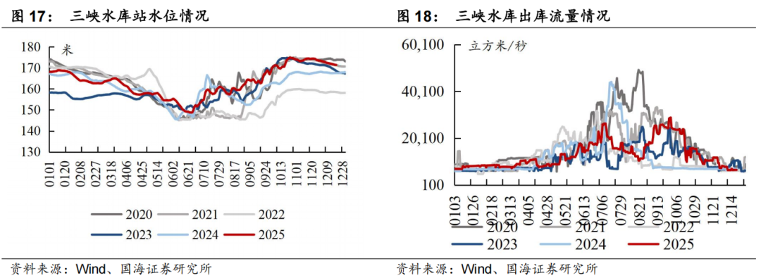 本周三峡水库出库流量环比上涨:截至12月20日,三峡水库出库流量为6520立方米/秒,周环比上涨60.0立方米/秒,同比下降6.7%。