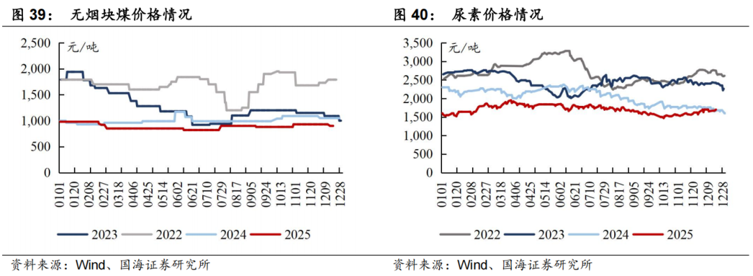 本周无烟煤市场小结及展望:产地方面,部分矿井完成年度生产任务而产量收缩,供应偏紧;需求端,电力行业负荷较平稳,对于煤炭需求支撑有限,非电方面化工行业刚需补库,本周无烟煤价格环比下降。尿素方面,农业需求维持刚性,本周尿素价格环比上涨。